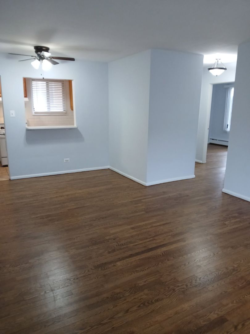 Large, bright, 2 bed/1 bath gem in a beautiful courtyard building features sunny kitchen, new appliances, granite countertops, separate dining room, spacious bedrooms, wall-to-wall closets, gleaming hardwood floors throughout, built-in AC: on site laundry and storage. 1/2 block from beautiful Richard D. Irving Park & Community Center; easy access to Chicago, expressways, Metra and downtown Homewood, this the ideal location for convenient, suburban living. Cats welcome (limited to 2) with a $100 non-refundable pet fee (per pet) and $15/month pet rent (per pet). $500 administrative fee applies in lieu of a security deposit.