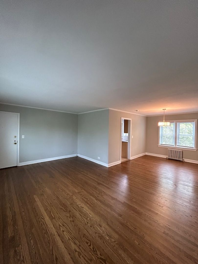 Home sweet home! Welcome to this spacious and bright 2 bed/1 bath unit on the top floor with large new kitchen, upgraded SS appliances, quartz countertops, adjoining dining room, two large bedrooms with wall-to-wall closets, newly refinished hardwood walnut floors, new windows. On-site storage & laundry. Cats and dogs less than 35 lbs welcome (limited to 2 pets) with a $100 non-refundable pet fee (per pet) and $15/month pet rent (per pet). $500 administrative fee applies in lieu of a security deposit. Parking depending on availability at the time of application. Enjoy easy access to shopping, Northwestern University, the lakefront, public transportation, Ascension Saint Francis Hospital and so much more!