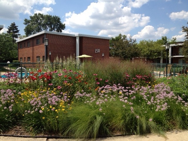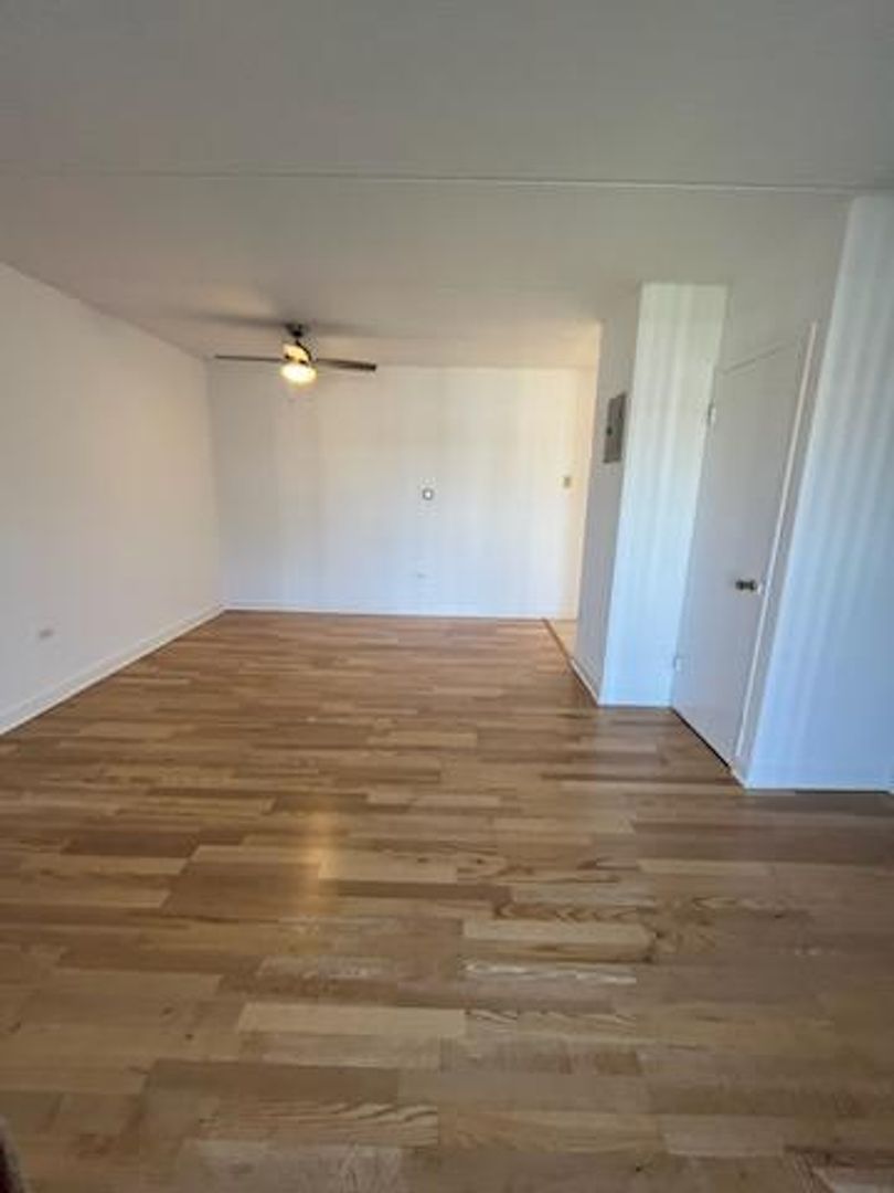 Recently renovated one bed/one bath sun filled apartment features a spacious kitchen, new appliances, tiled countertops, new HW flooring throughout, new bathroom, and a large private patio off spacious living room overlooking the beautiful courtyard. Additional features include a large bedroom with wall-to-wall mirrored closets, tons of natural light, air conditioning and on-site laundry/janitor. Convenient access to 290, O'Hare, shopping, parks and entertainment make this an ideal location for suburban living. Cats welcome (limited to 2) with a $100 non-refundable pet fee (per pet) and $15/month pet rent (per pet). $500 administrative fee applies in lieu of a security deposit.