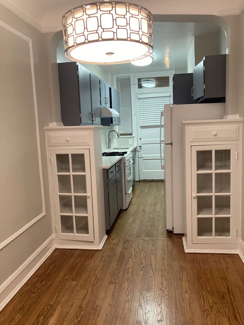 This lovely 1 bed/1 bath recent renovation in historic courtyard building boasts a newer kitchen, updated appliances, white cabinets and a cozy dining area with multiple vintage built-ins. Take advantage of the sun-filled living room overlooking a beautiful tree-lined street, a large bedroom, gleaming oak floors throughout, newer windows and on-site laundry. Responsive management and janitor. With easy access to public transportation (CTA, Metra, Red Line, Lakeshore Drive), north side beaches, shopping along Howard Ave, Northwestern and Loyola, this is a dream location. Cats and dogs less than 35 lbs welcome (limited to 2 pets) with a $100 non-refundable pet fee (per pet) and $15/month pet rent (per pet). $500 administrative fee applies in lieu of a security deposit.